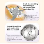 » Lưỡi dao 8 lưỡi xay nhuyễn mọi loại nguyên liệu: lưỡi dao được làm từ chất liệu inox 304 cứng chắc và sắc bén, với 8 lưỡi dao xay nhuyễn nguyên liệu nhanh chóng. Điều này giúp cho thành phẩm sữa thơm ngon và nhuyễn mịn hơn.