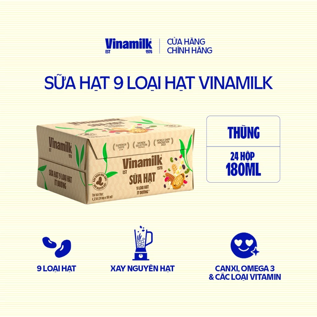 Thùng 24 hộp Sữa hạt 9 loại hạt Vinamilk ít đường – hộp 180ml🔥